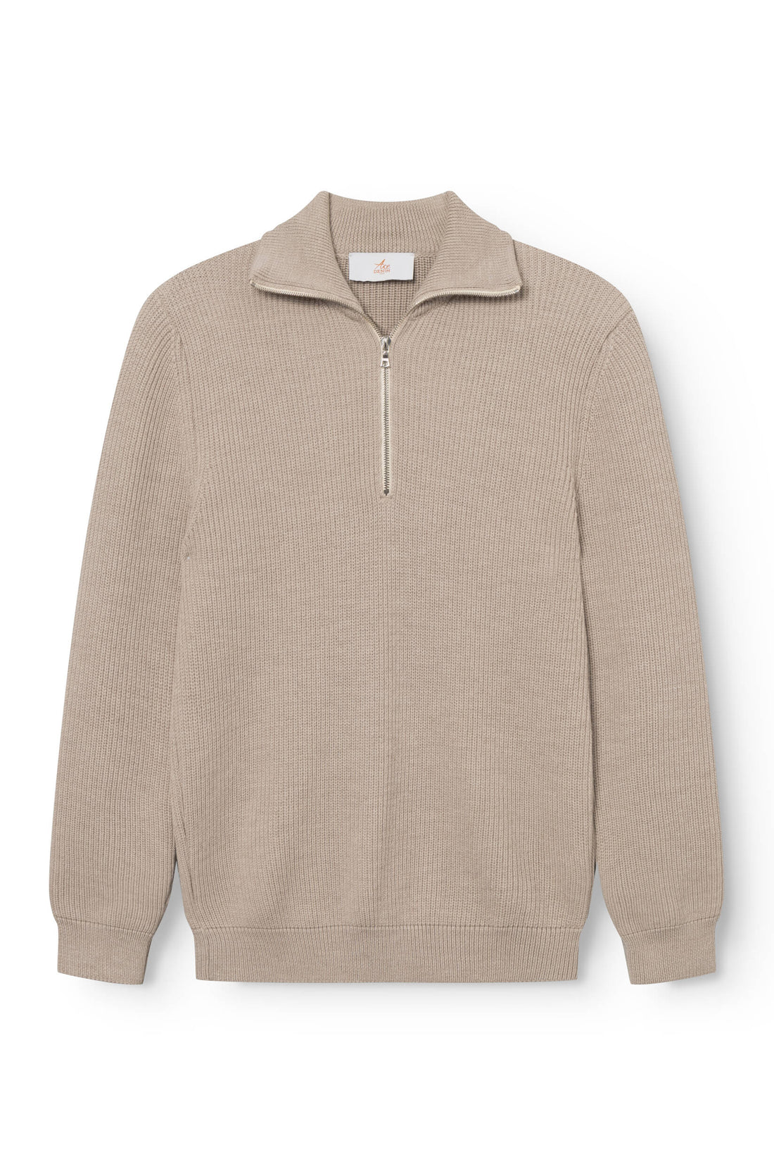 AD 198 - Pull à Col Zippé en laine Beige- Prix normal